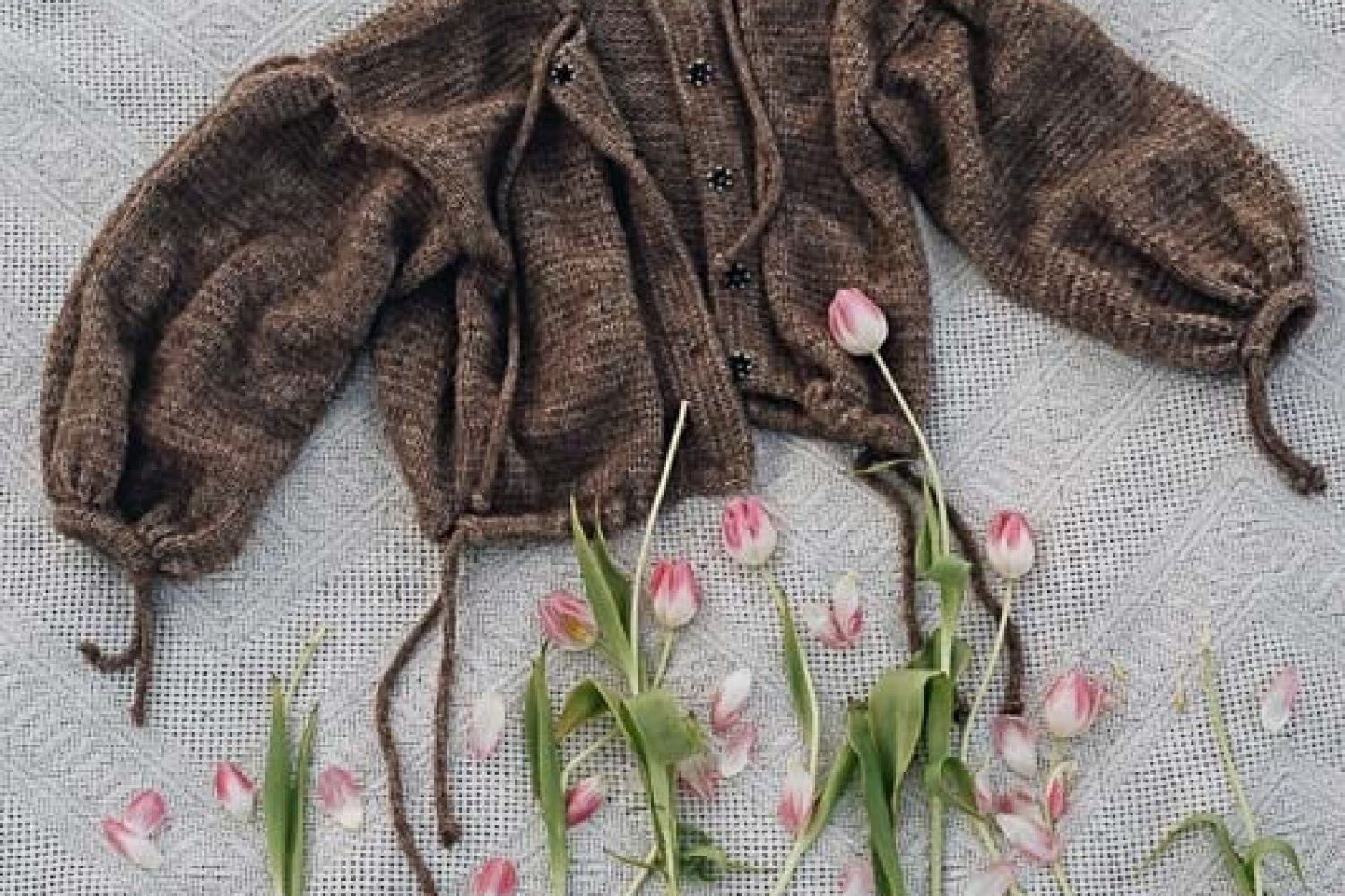 Cardigan was handknitted in stockinette stitch.
